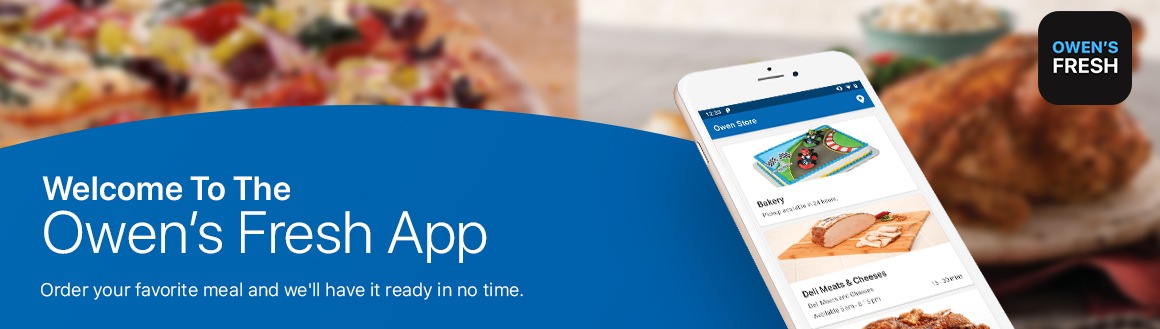 We currently offer Owen's Fresh at participating locations. Choose from deli meats and cheeses, freshly made chicken or a delicious pizza- place your order, come in and don't wait in line-just pick it up and go!